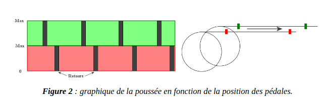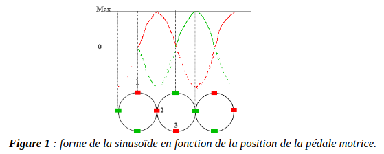 Dans un pédalier standard, la force est nulle quand la pédale est au "point-mort haut" ou au "point-mort bas". En revanche, la force est maximale quand les pédales sont à l'horizontale. Le rendement du pédalage revient à une courbe sinusoïdale et équivaut à 70% de la force appliquée.